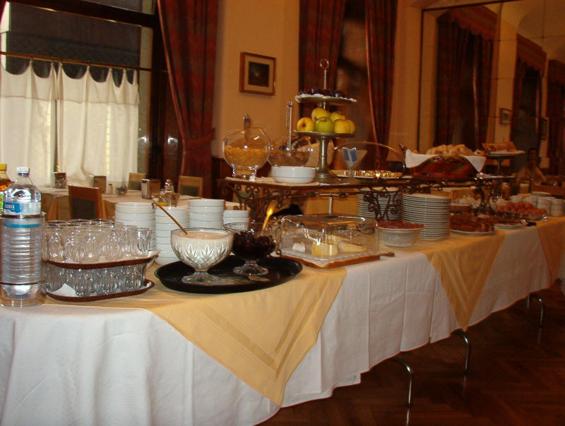Torino, fine 2003 inizio 2004 Una prima colazione da antologia, a buffet, e c'era di tutto (almeno nel 2004): formaggi, salumi, frutta, torte, paste succhi etc etc. A due passi dalla stazione, prezzo intorno ai 70-80 euro di oggi (sempre il solito standard: con bagno e colazione). Però ci sono anche camere ad un prezzo minore. Lì vicino c'è un locale fatto apposta per noi g-g-g-giovani, dove mangiare (anche una pizza) e bere qualcosa ad un prezzo semiragionevole, si chiama Stars & roses. Giudizio complessivo: certo, va bene se lo paga qualcun altro. Riferimenti: Hotel Roma & Rocca Cavour, Piazza Carlo Felice, 60 Torino Tel: 011/5612772 sito www.romarocca.it "Pub" Stars & Roses, Piazza Paleocapa, 2. |