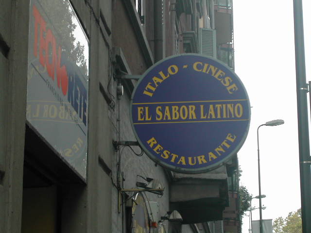 A milano, l'offerta culinaria è veramente varia. Puoi mangiare di tutto ovunque. Un giorno sono entrato in questo ristorante e mi sono seduto per gustare un piatto dal sabor latino, tipicamente da restaurante italo-cinese. Subito, la cameriera africana m'ha dato un antipasto di sushi. Buonissimo. Il gestore croato poi mi ha intrattenuto e abbiamo disquisito piacevolmente dei loro vini americani che vendono nelle classiche confezioni tedesche da due bottiglie. Un po' brillo, ho quindi chiesto una fiorentina, ma l'altra cameriera eschimese non ha capito e mi ha portato una pietanza indiana, piccante. Strapieno sono poi andato a pagare. Fortuna che avevo un po' di dracme.