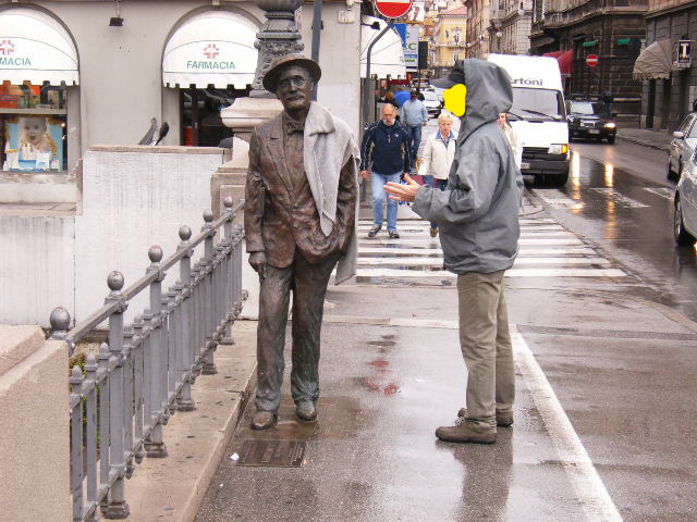 Attenzione. ATTENZIONE. Non ascoltate quell'uomo. NON ASCOLTATE QUELL'UOMO. Non dategli retta. Lui è la Medusa Parlante. Ha la capacità di tediarvi a tal punto da trasformarvi in pietra eppoi, non contento, in bronzo in pochi secondi. In questo caso un povero vecchietto che stava passeggiando candidamente, è stato fermato dalla medusa umana col pretesto di chiedere informazioni stradali. La medusa si riconosce sulla destra grazie a questa foto scattata con uno zoom di 79751 mm, ad una distanza di circa 35 km (volutamente è stato coperto il volto perchè c'è il rischio di essere comunque trasformati!). Come tutte le meduse antologiche ha la testa da cui fuoriescono centinaia di tentacoli, serpi e vipere, che però sono coperte dal cappuccio. La capacità di questo mostro è quello di pronunciare pochissime parole ma noiose, nooioose, talmente noiose, che ti addormentano all'istante. E da lì, la trasformazione in pietra e successivamente in bronzo, è immediata. Il vecchietto, un archeologo, ha riconosciuto sì, grazie alle sue conoscenze, la medusa, ma purtroppo per lui, troppo tardi. Ha tentato di fuggire, guardando avanti e tentando di allontanarsi a piccoli ma veloci passetti, però, purtroppo non c'è stato niente da fare. Si riconosce sul suo volto bronzeo la classica espressione: "Uhhhhh, che due maroni, la Medusa Parlante". Ma l'unica cosa che si è salvata è stata la mantella grigia sulle sue spalle. La medusa si è poi dileguata. Alcuni testimoni, piuttosto addormentati e rigidi perchè sotto l'effetto delle vicinanze della Medusa Parlante, hanno raccontato che il mostro avesse proferito queste parole: "Mi scusi, un'iiiiiinfooooooormaaaaaaaaaaaaaazioneeee. Loooooooo sa che non ci sono piùùùùùùùùù le mezze staaaaaaaaaaaaaagiooooooooooooooniiiiiiiiiiii? E che oggi mi sonoooooooo meeeeeeeeeessoooooooo un golf di laaaaaaaaanaaaaaaaa, ma ieri erooooooooo in manicheeeeeeeeeeee cooooorteeeee?". Pare poi che avesse detto addiritturzzzzzzzzzzzzzzzzzzzzzzzzzzzzzzzzzzzzzzz. Zzzzzzzzzzzzzzzzzzzzz. |